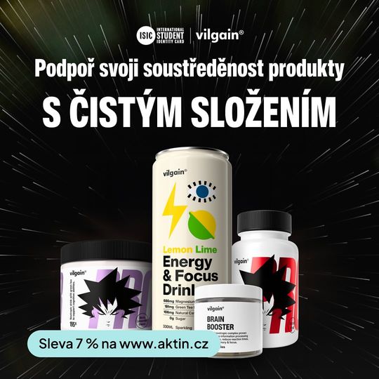 Dopřej své mysli kvalitní boost nejen během zkouškového! 🧠🚀 Na aktin.cz najdeš velký výběr produktů pro podporu tvé koncentrace a výkonnosti. A s průkazem ISIC máš 7% slevu na veškerý sortiment. 👍 Vybrali jsme pro tebe: ✅ Vilgain Prodigy Powder ⁠–⁠ prémiová podpora soustředění, rychlosti reflexů a paměti, 4 přírodní extrakty, patentovaná forma citikolinu Cognizin® ✅ Vilgain Energy & Focus Drink ⁠–⁠ osvěžující a energizující perlivý nápoj, podporuje fyzickou i psychickou výkonnost, slazen přírodním sladidlem ze stévie ✅ Vilgain Brain Booster ⁠–⁠ podporuje pracovní a dlouhodobou paměť, zlepšuje soustředění, 4 přírodní extrakty ✅ Vilgain Prodigy ⁠–⁠ prémiová podpora soustředění, rychlosti reflexů a paměti, patentovaná forma citikolinu Cognizin®, cucací tablety #brainboost #energy #energie #zkouskove #vilgain #aktin #studentlife
