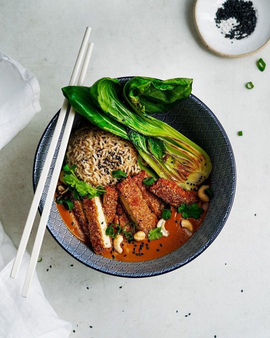 Vegan katsu karí s tofu. 🍛Katsu curry so zeleninou som ochutnala pred rokmi v Japonsku 🇯🇵a nedávno ma moji kamaráti pozvali na nedeľný vegánsky obed, kde práve katsu karí uvarili. Ale už teda s vegan rezňom. 😊Bolo skvelé a hneď som ho začala variť aj u nás doma. Je to skvelý recept, ktorý môže mať veľa podôb. Opekám k nemu marinované tofu a do omáčky pridávam kokosové mlieko a mrkvu. 🥕Niekto môže siahnuť po jablku a sójovom mlieku, pridať cesnak, viac garam masaly alebo použiť agáve, worcestrovú omáčku, hubový vývar... Výsledkom by však vždy mala byť krásne krémová oranžová omáčka, ktorá je jemne sladšia, ale skrýva aj jemnú kyslosť a dostatočnú slanosť. 🤤Verzií omáčky je nespočeť a dúfam, že vám bude chutiť aj moja! Pre tento recept som využila moje partnerstvo s @aktinsk, kde zoženiete veľa vegánskych potravín na rôzne recepty. 🍩 Skrz môj odkaz www.aktin.sk/surovadcerka máte na Slovensku poštovné zdarma už len do 1.4.2022! 💌 ✨Celý recept nájdete na www.dcerka.sk. Ale skrátenú verziu si nezabudnite s týmto príspevkom uložiť🙌😊Ak chcete vidieť všetky moje posty, nastavte si upozornenie na novinky, nechajte like alebo komentár. 🥰 Omáčka: 40 g rastlinného masla (prípadne repkový olej) 150 g bielej cibule 20 g karí korenia 2 bobkové listy ¼ ČL kurkumy ¼ ČL kajenského korenia 80 g mrkvy 15 g koncentrovaného rajčinového pretlaku 300 g kokosového mlieka 300 g zeleninového vývaru ½ PL sójovej omáčky ¼ ČL soli ¼ g garam masala 1 ČL cukru 1 ČL kukuričného škrobu Tofu: 200 g marinovaného/ bieleto tofu 50 g hladkej múky 65 g vody ½ ČL sójovej omáčky 1 ČL octu 1 štipka soli panko alebo kukuričná strúhanka repkový olej 👩🏻🍳V hrnci na strednom plameni roztopte rastlinné maslo alebo zohrejte olej. Pridajte na drobno nakrájanú cibuľu a opakajte ju asi 15 minút, kým nie je zlatistá. Následne pridajte karí korenie, bobkové listy, kurkumu, kajenské korenie a mrkvu nakrájanú na kúsky. Všetko krátko premiešajte a opekajte. Stačí 30 sekúnd, kým sa korenie rozvonia. Na záver vmiešajte rajčinový pretlak a postupne začnite prilievať, za stáleho miešania, kokosové mlieko. Keď zovrie, pridajte zeleninový vývar. Pokračovanie v komentároch ⬇️ #aktin #spolupráca